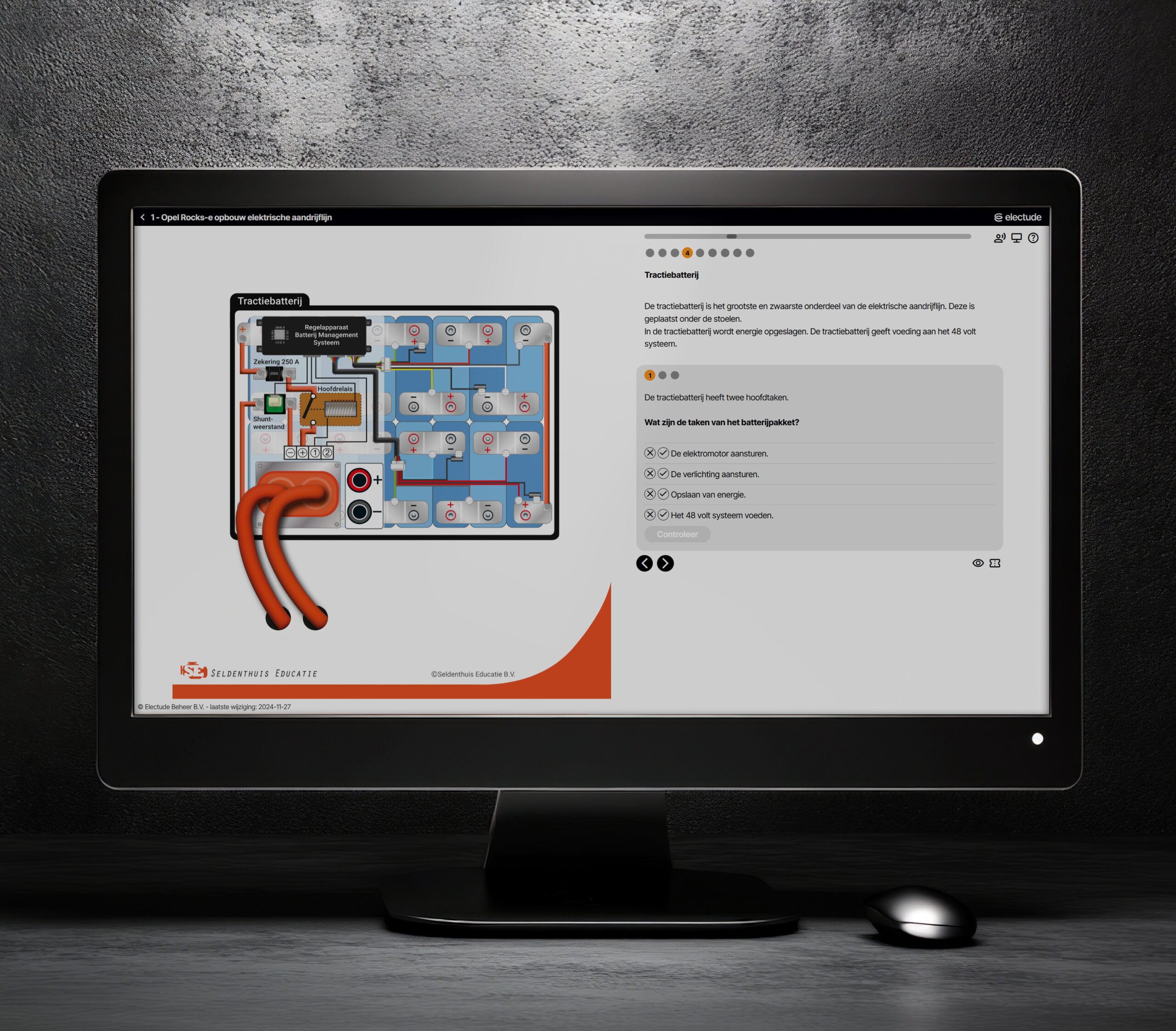 Bij veel van onze leermiddelen leveren we interactieve e-learning, ontwikkeld in Electude – hét platform voor (auto)techniekonderwijs in Nederland. Direct inzetbaar, didactisch doordacht en kostenbesparend.