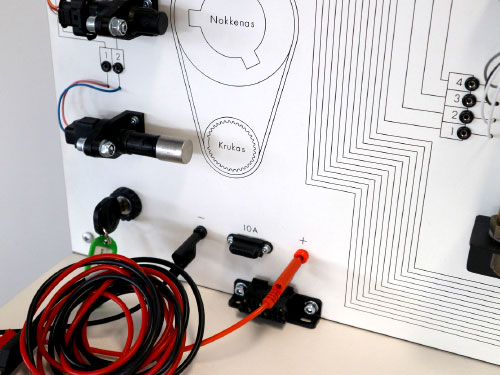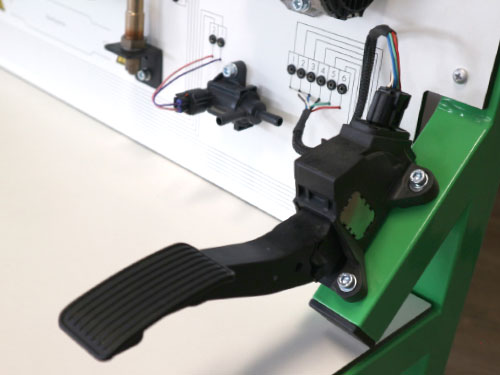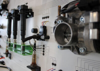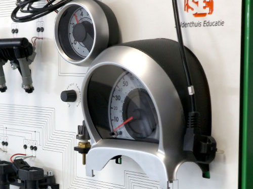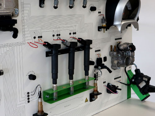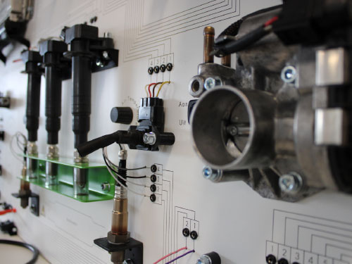 Het motormanagementbord is een leermiddel met een volledig functionerend motormanagementsysteem.