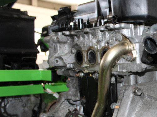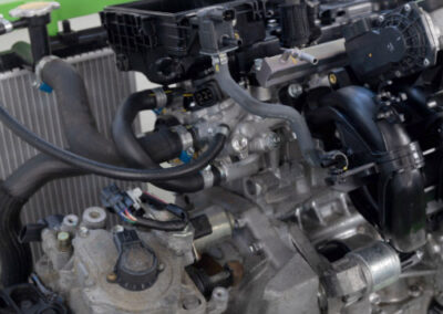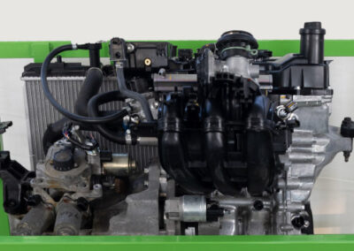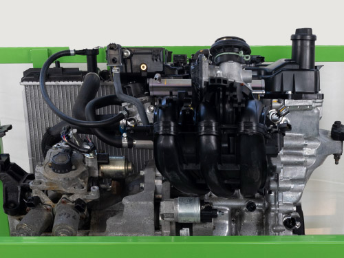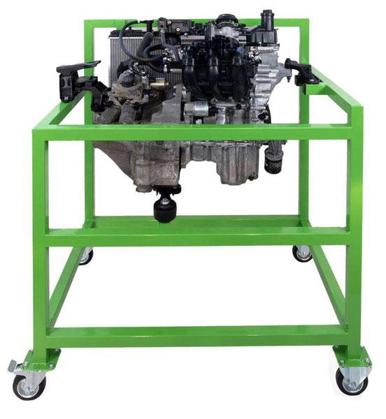 Een ideale praktische opstelling voor vmbo en mbo-niveau 2: een complete driecilinder motor van een Toyota Aygo in een stevig gepoedercoat, verrijdbaar frame.